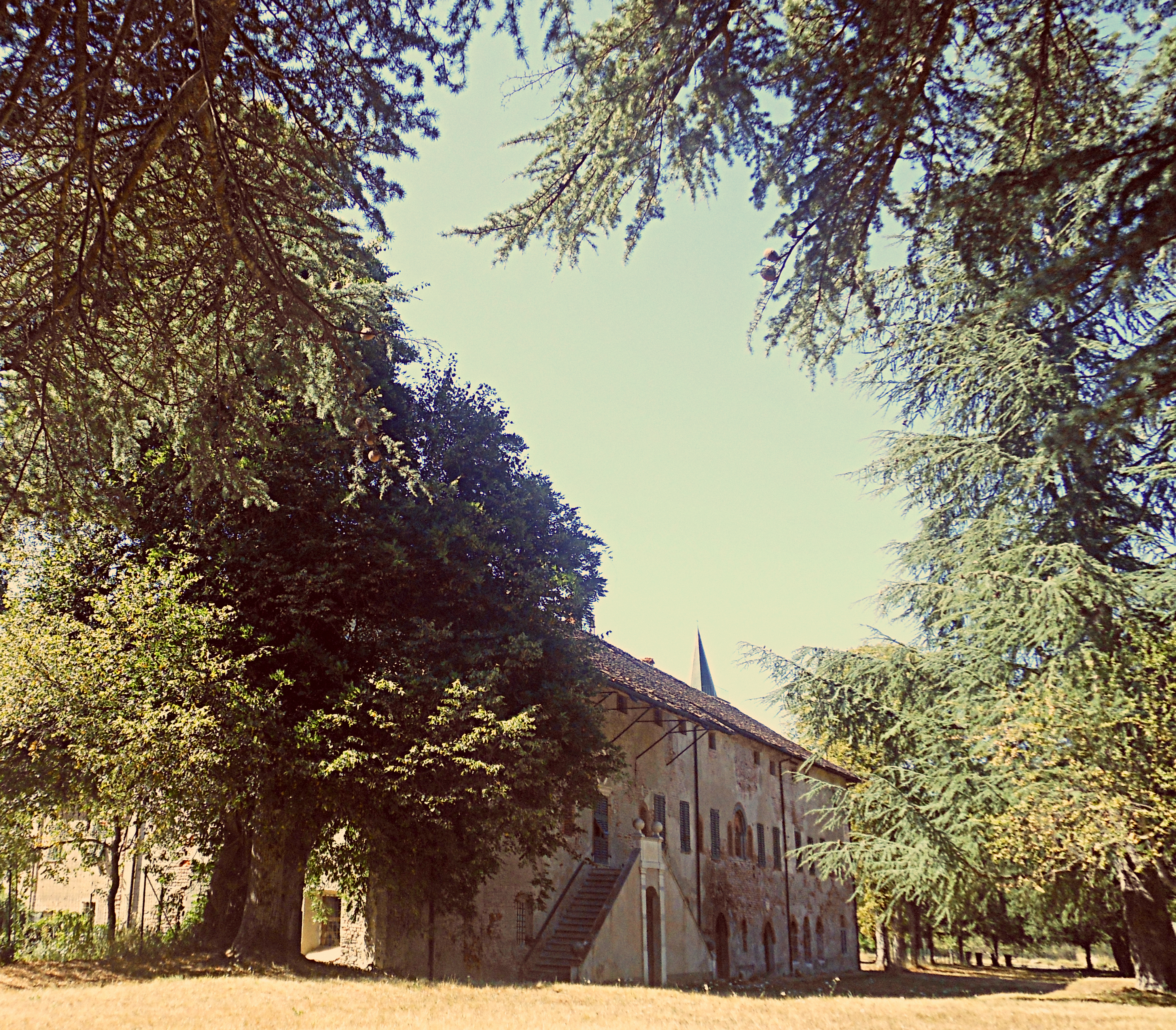 Sembrano risalire al periodo di fondazione del monastero, e invece no: furono messi a dimora solo nel 1892 come testimonia la foto che ritrae gli uomini sul prato.