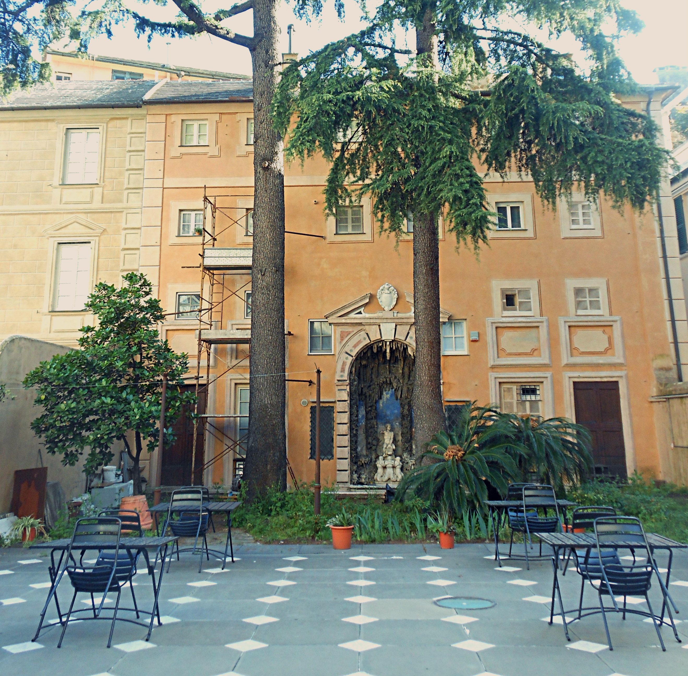 La prima cosa che mi ha colpito sono state le volte affrescate. Furono realizzate da Lazzaro Tavarone, allievo di Luca Cambiaso: al centro Guglielmo Embriaco espugna Gerusalemme.