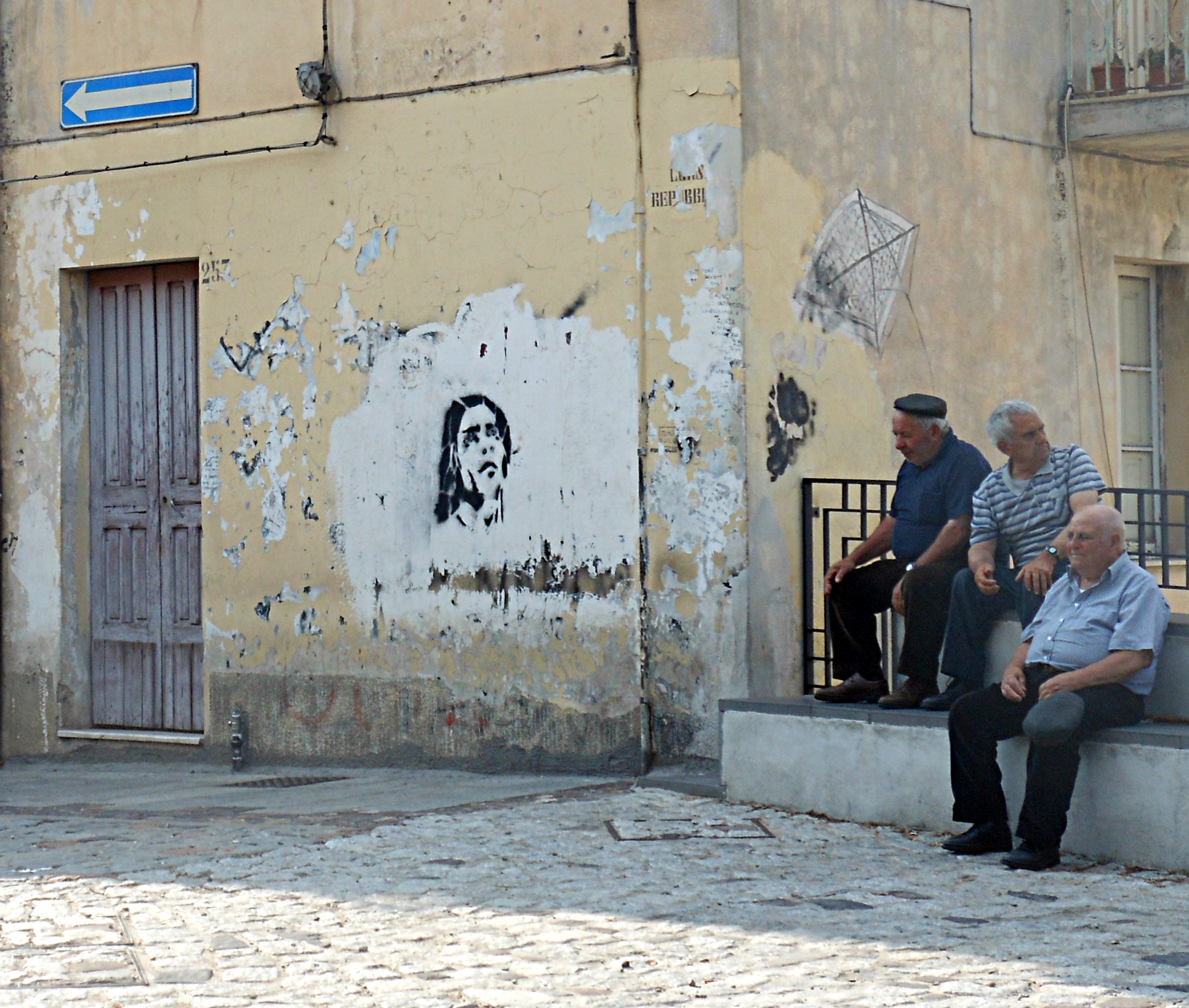Le prime persone un gruppetto di uomini anziani, che mi è venuto spontaneo salutare come entrassimo in uno spazio privato. Seduti su un muretto, pantaloni e maglie scuri, e la tradizionale coppola, Hanno gentilmente risposto e anche un po’ sorriso. Ma l’impressione di aver oltrepassato una soglia me la sono portata dentro per tutta la visita al paese.