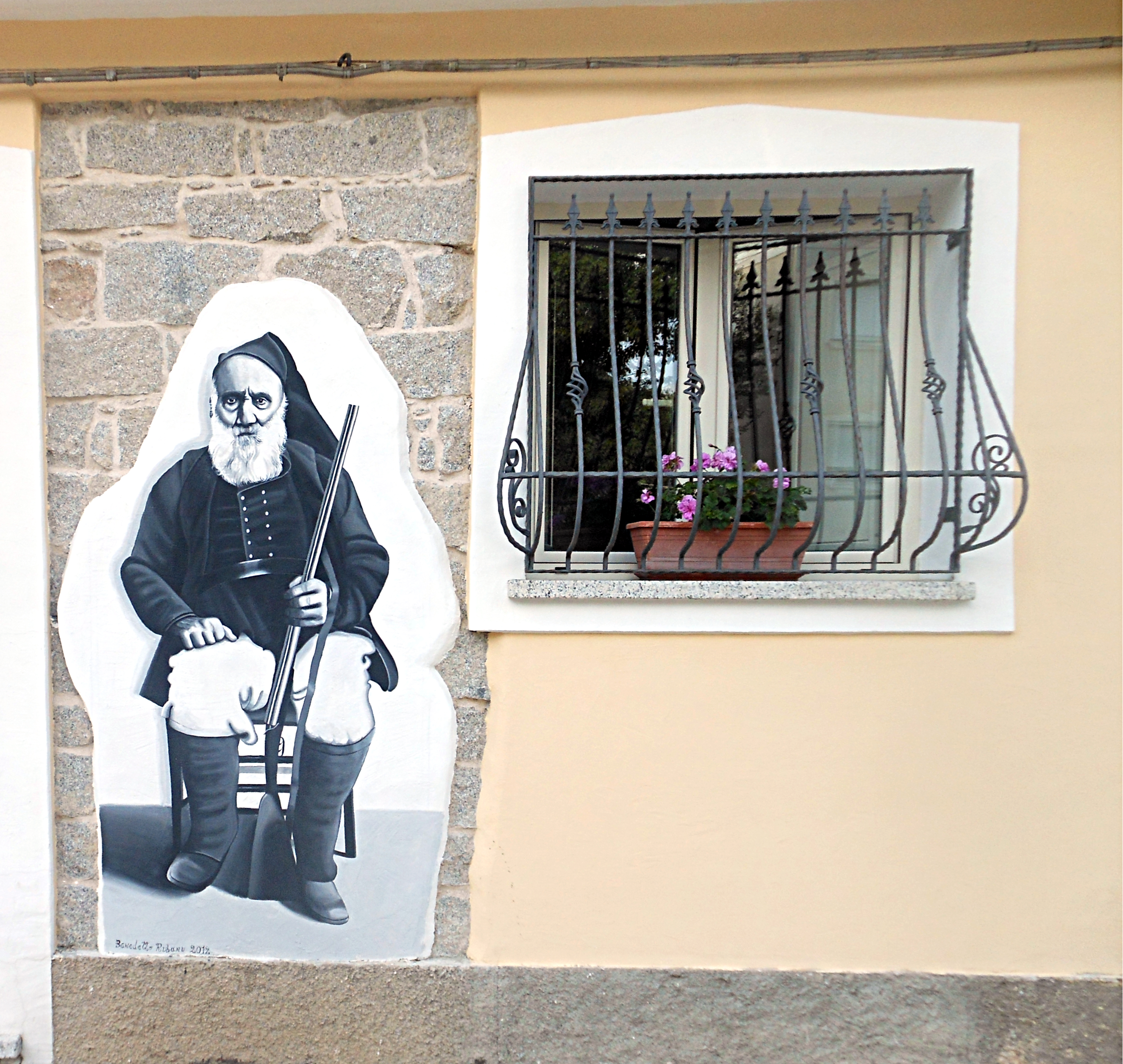 Tranne due, le donne le abbiamo incontrate sui murales, per lo più ritratte nelle loro occupazioni domestiche. Madre, sorella, figlia e moglie. Una figura di enorme importanza in una società in cui, a causa delle assenze dell’uomo per la cura dei pascoli, la donna si era specializza nell’andamento di tutto ciò che ruota intorno alla casa e alla famiglia. Quindi all’interno e all’esterno. La sola di cui l’uomo si fidava e che così diventava “Sa meri de’omu”.