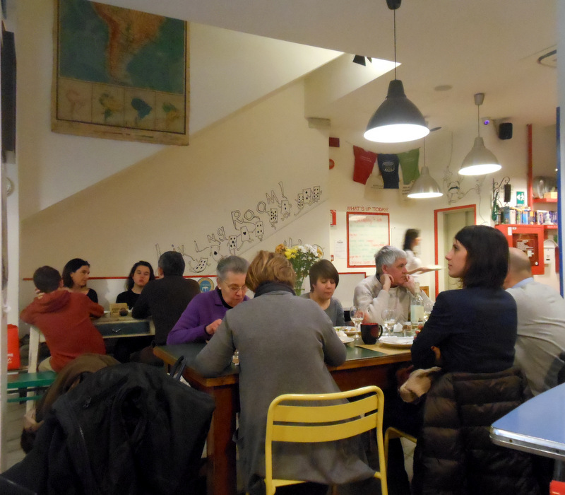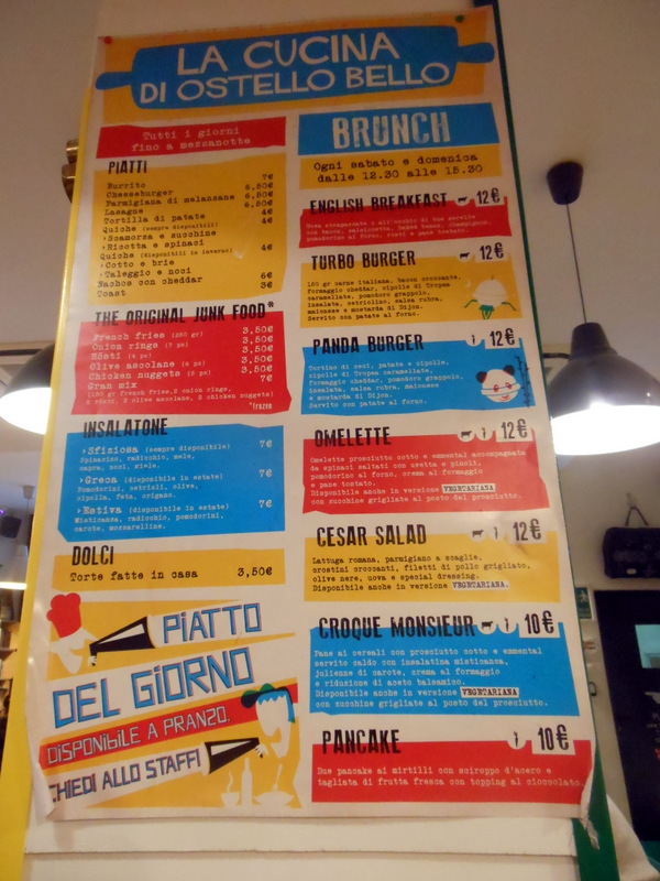 Dall’esterno l’atmosfera del locale è accattivante. Quel giorno, che era sabato, i tavoli erano per lo più occupati non solo da giovani viaggiatori ma anche da famiglie con bambini e gente come me, di mezza età, perchè all’Ostello ci possono andare tutti, anche per ascoltare musica, per l’aperitivo e per molto altro che dormire e mangiare.
