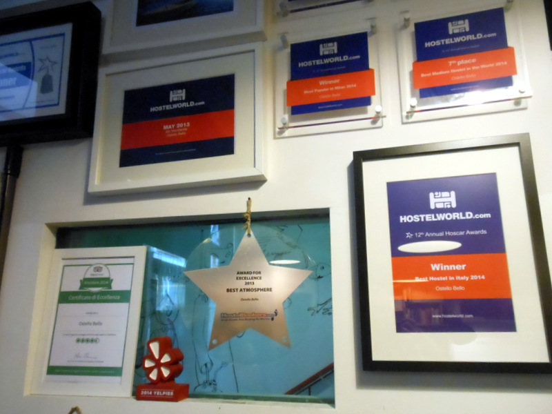 L’Ostello Bello è come dico nel titolo in realtà bellissimo, dovete credermi. E non lo dico solo io, lo dicono anche i tanti premi che glielo hanno riconosciuto e che sono appesi in bella vista all’ingresso, così da subito uno sa con chi ha che fare e si sente, diciamolo, rassicurato.