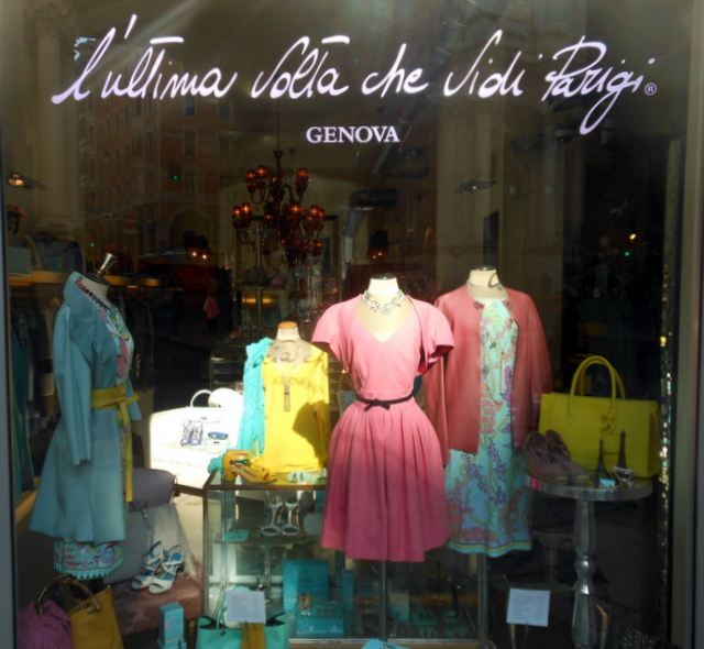 Comunque un tributo a Paris lo rivolgo spesso. Sosto ammirata ma anche un po’ malinconica davanti alle vetrine di L’ultima volta che vidi Parigi, ispirate alla Parigi degli anni ’50 (quella del film) che originò mostri sacri, icone e perdigiono, ricchi e squattrinati, appartamenti lussuosi e tappezzerie sbrecciate, ombre vivaci su sfondi fané. Più che gente sembrano foulard, per dirla alla Paolo Conte…