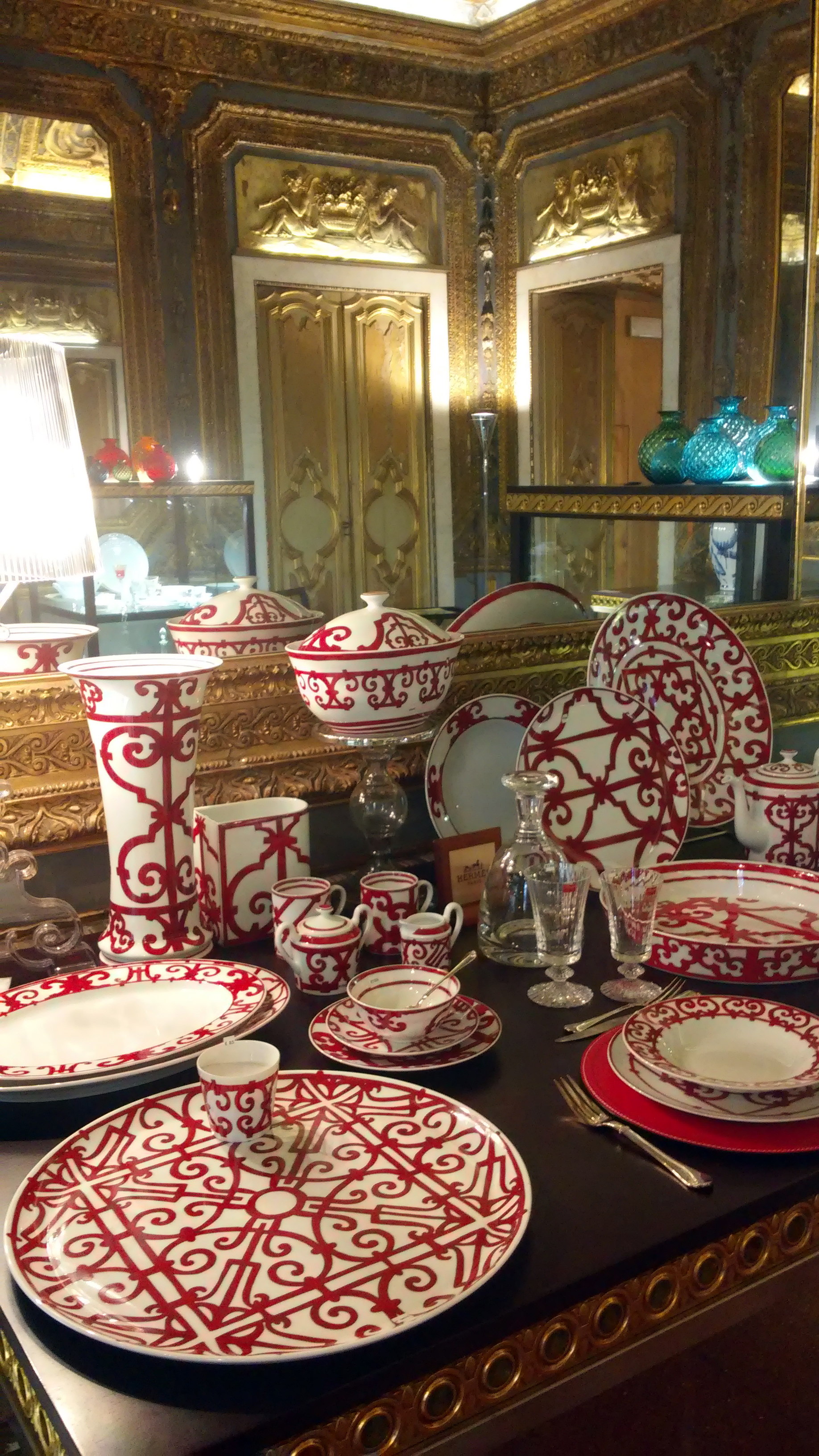 Hermes, Balcons de Guadalquivir, disegno originale dei balconi in ferro battuto che si affacciano sul fiume. Colore rosso arroventato e fiammeggiante