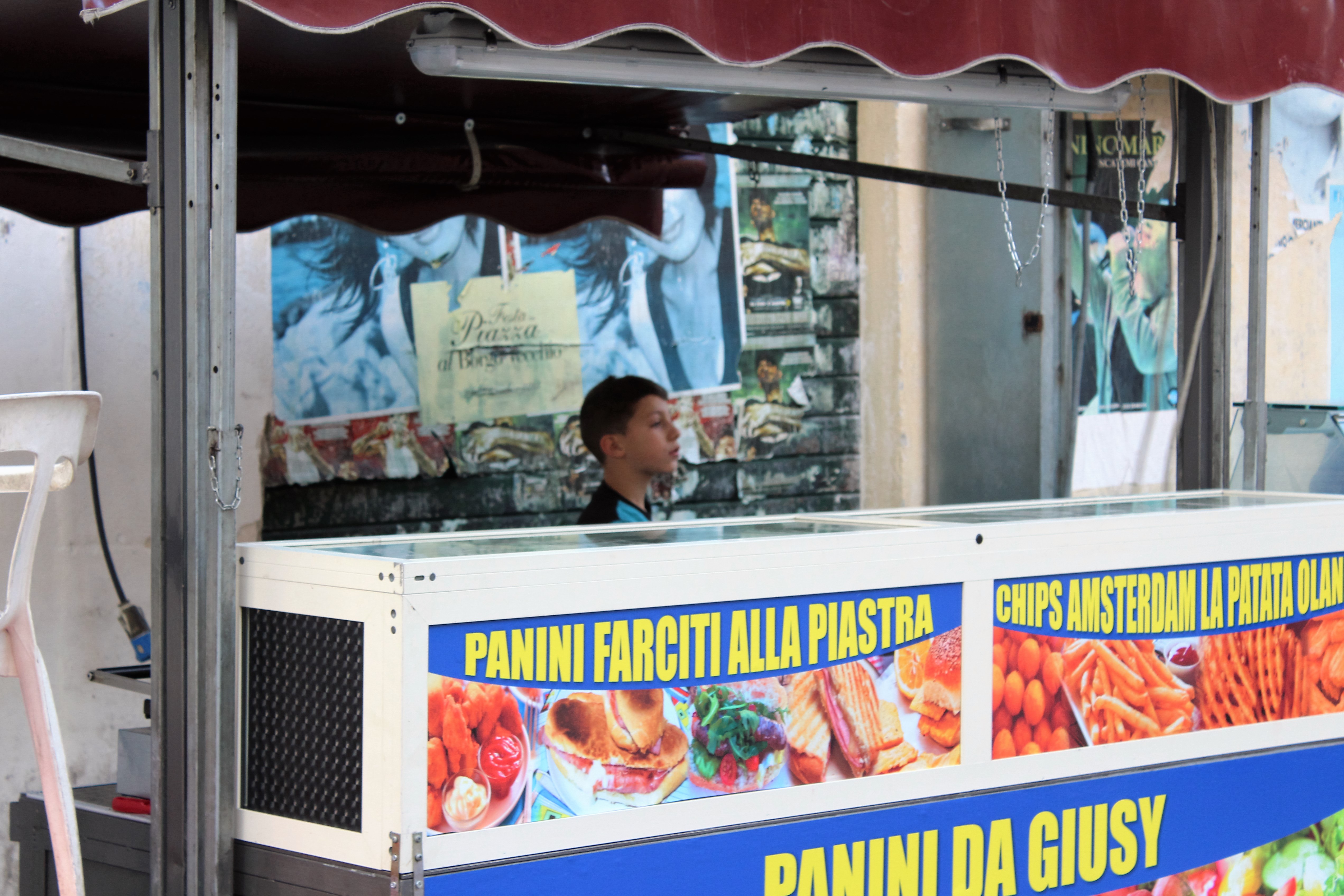 Le difficoltà economiche di chi ci vive sono evidenti, forse anche una certa contiguità con la criminalità. Nella piazza centrale giovani uomini stanno radunati in piccoli gruppi, un ragazzino prepara il banco per la vendita dei panini, un signore con un grande barbecue cuoce carne e salciccia: pare si dica “arrusti e mancia”.