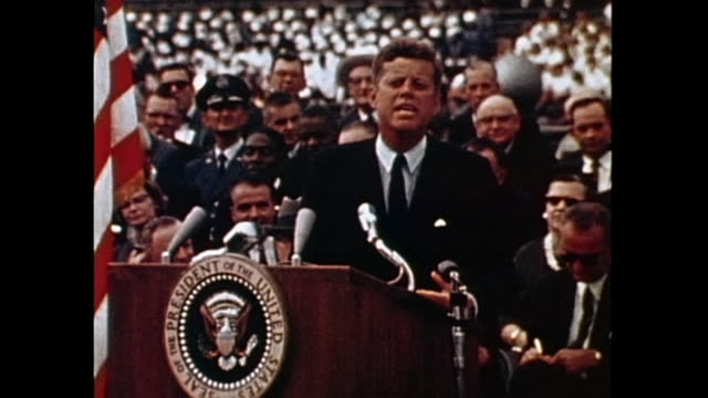 ‘We choose to go to the moon’ . The speech was one of Kennedy’s earlier speeches meant to persuade the American people to endorse the Apollo program.Elements of this image furnished by NASA